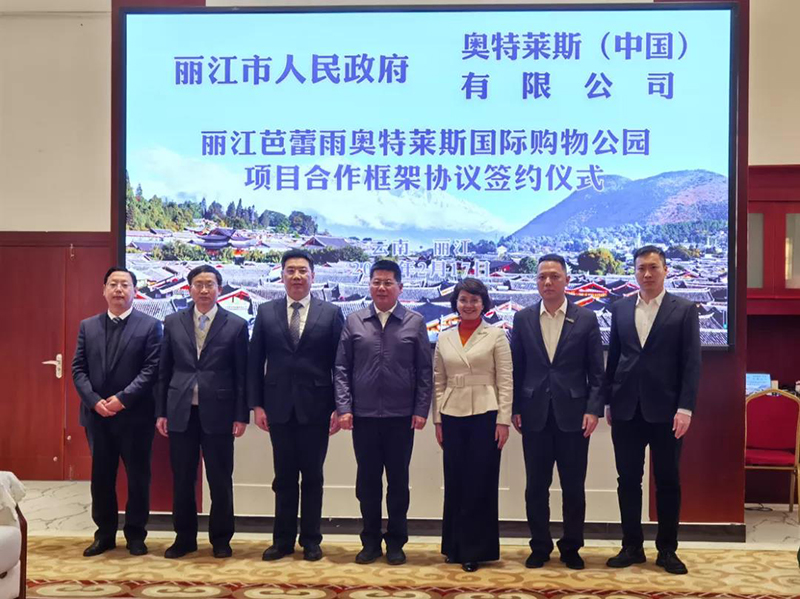2022年2月17日,奧特萊斯(中國)有限公司總裁拜訪麗江市政府,與麗江市蘇永忠市長在麗江座談,并見證《麗江芭蕾雨奧特萊斯國際購物公園項目合作框架協(xié)議》的簽署。奧特萊斯(中國)助理總裁李曉薩、投資拓展中心總經(jīng)理周毅,以及麗江市政府、市發(fā)改委、市投資促進局、市住房和建設局、市文旅局、玉龍雪山管委會、玉龍縣政府等主要領導參會。