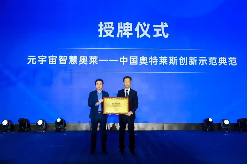 授牌儀式(圖左:中房智庫秘書長(zhǎng)鄧明政;圖右:奧特萊斯(中國)研發(fā)策劃中心總經(jīng)理李國偉)
