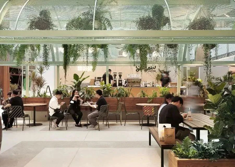 非標(biāo)商業(yè)的創(chuàng)新靈感不只源于對未來空間豐富的想象,也可以運用復(fù)古手法,活化舊商業(yè)形式?!该朗呈屑咕屯ㄟ^將傳統(tǒng)商業(yè)中以“吃”為主的餐飲空間,轉(zhuǎn)換為“社交”需求超過“吃”本身的復(fù)合空間。在為空間帶來新可能的同時,也為新一輪商業(yè)中心的創(chuàng)新開發(fā)打開了新的局面,讓商業(yè)不易被復(fù)制。