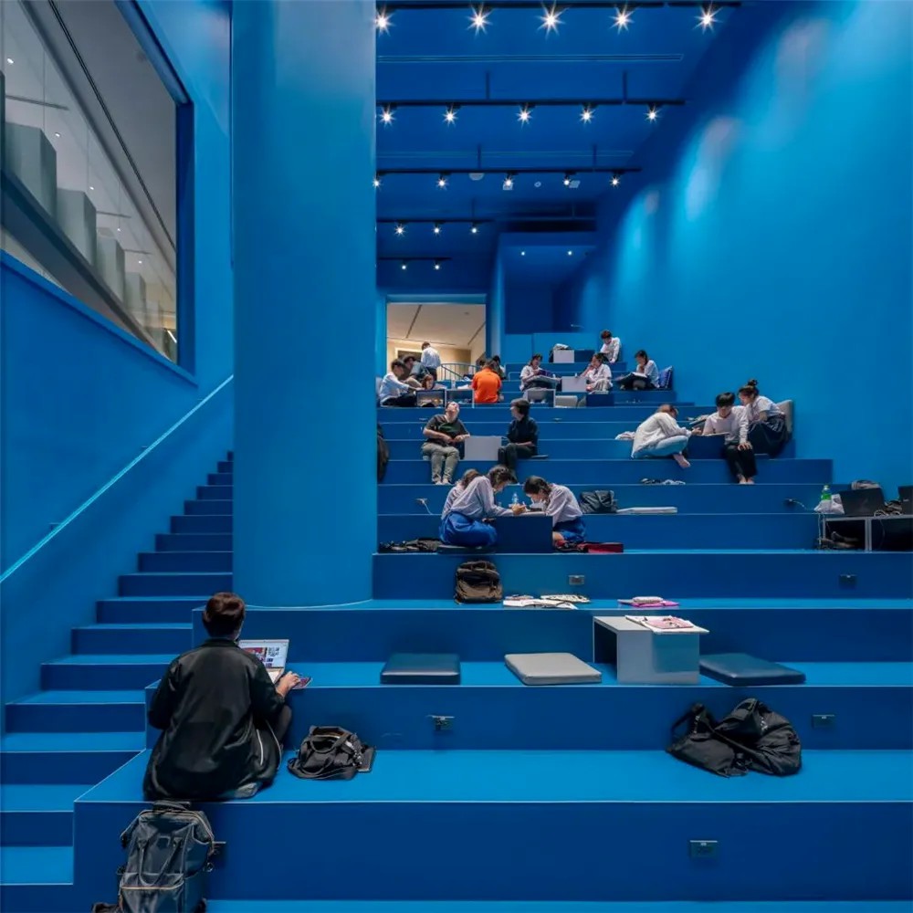 在空間優(yōu)化上,GRiD項(xiàng)目著重打造社交與活躍氛圍。通過引入“社交樓梯”理念,將傳統(tǒng)商鋪空間轉(zhuǎn)變?yōu)榧蓍e、交流與體驗(yàn)于一體的多元功能區(qū)。這些設(shè)計(jì)不僅增強(qiáng)了建筑的視覺吸引力和可識(shí)別性,還以鮮明的橙色、藍(lán)色及白色調(diào),為空間注入活力與現(xiàn)代感,使其在城市街角中獨(dú)樹一幟。