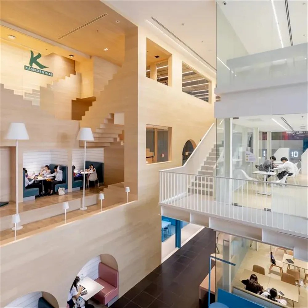 SAMYAN CO-OP是購物中心二樓的共享空間,含5個(gè)獨(dú)立又相連的建筑,設(shè)自習(xí)室、討論室、會(huì)議室等,對(duì)外開放租賃。一樓售日常用品,二樓為生活服務(wù)類店鋪,三樓融合泰國傳統(tǒng)與現(xiàn)代藝術(shù)風(fēng)格的空間。
