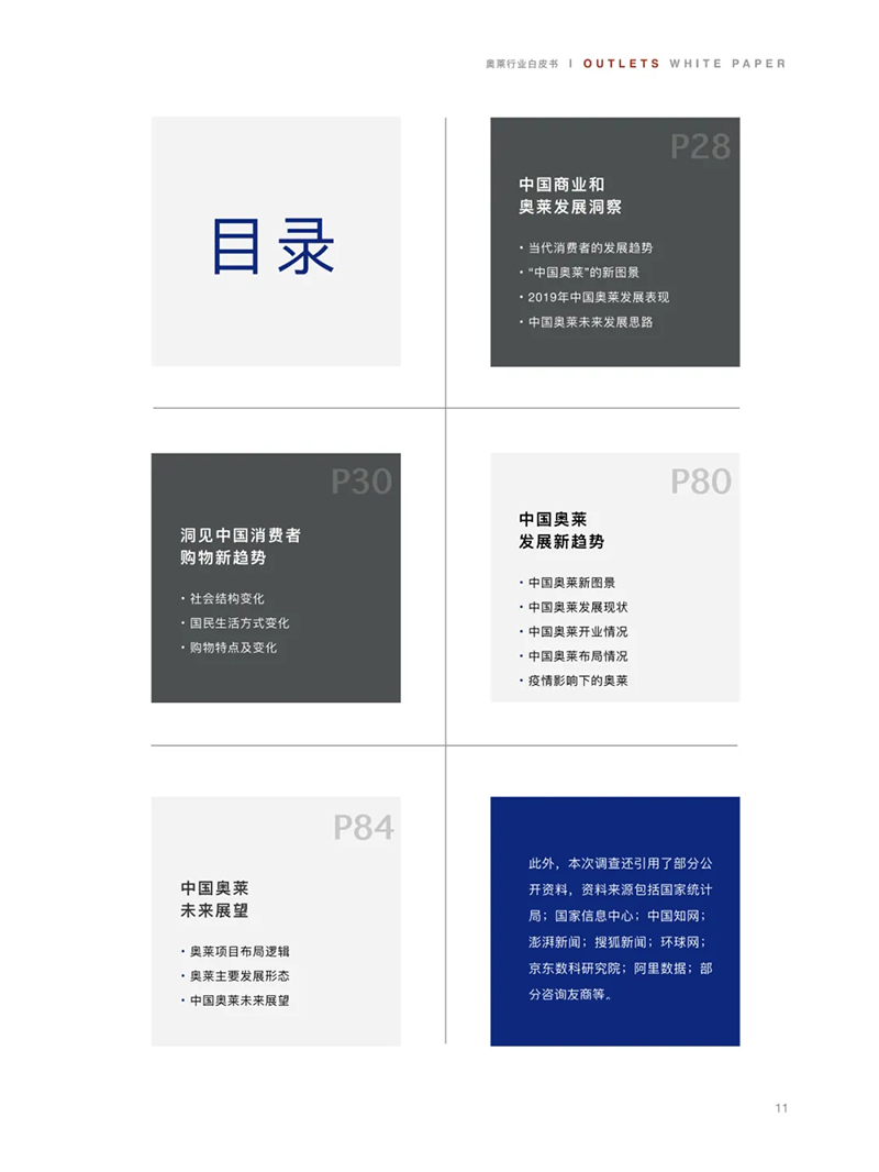 為了及時總結(jié)中國奧萊的發(fā)展狀況和運營經(jīng)驗,引導中國奧特萊斯產(chǎn)業(yè)在后疫情時代的健康、快速發(fā)展,我們組織編寫了這部《2020中國奧特萊斯行業(yè)白皮書》。我們基于對后疫情時代中國經(jīng)濟的內(nèi)生動力,以及中國消費格局、消費趨勢新變化的深?分析,并通過線上問卷調(diào)查與線下深度訪談相結(jié)合的方式,客觀分析了中國奧特萊斯的發(fā)展表現(xiàn),綜合闡述了中國奧特萊斯的未來發(fā)展思路。