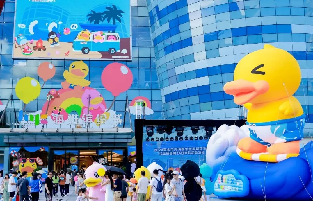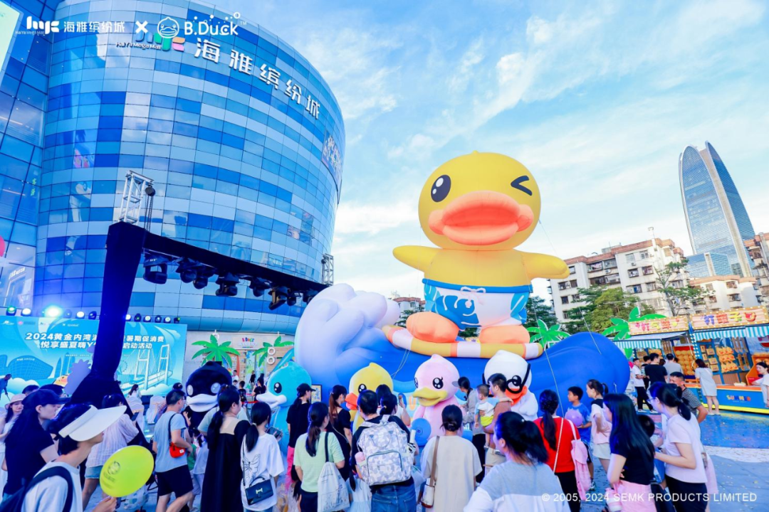 時值暑期,深圳海雅繽紛城邀請B.Duck品牌創(chuàng)辦人“鴨爸爸”許夏林,以及市/區(qū)商務局、中山商務局、新安街道辦、市零售商業(yè)行業(yè)協(xié)會等官方代表,共同開啟了2024黃金內(nèi)灣消費季暨暑期促消費——悅享盛夏嗨Ya狂歡購系列活動的序幕,成功完成中國第一自主IP B.DUCK小黃鴨的“B.DUCK嗨YA狂歡節(jié)全國首展”。