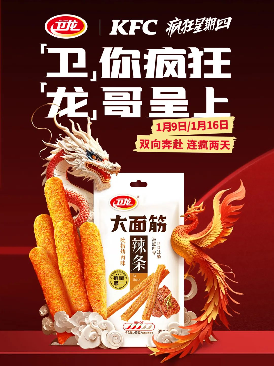 隨著2025年的到來,衛(wèi)龍攜手肯德基推出了“瘋狂星期四”活動,給營銷界帶來了一次不小的沖擊。此次衛(wèi)龍與肯德基的聯(lián)名合作,更是將“瘋狂”的概念發(fā)揮到了極致。在聯(lián)名主題店內(nèi),墻壁上布滿了以“瘋狂星期四”為主題的創(chuàng)意文案,例如“瘋搭子上線,開年就瘋辣!”和“衛(wèi)你瘋狂,龍哥呈上”等,打響2025年發(fā)瘋營銷第一炮。