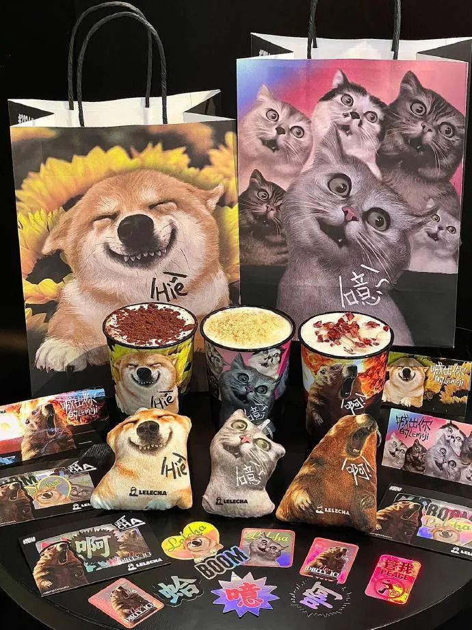 在2024年7月,樂樂茶再次推出三款新品,并以土撥鼠、柴犬、貓貓組成表情包大軍,替打工人喊出不開心。