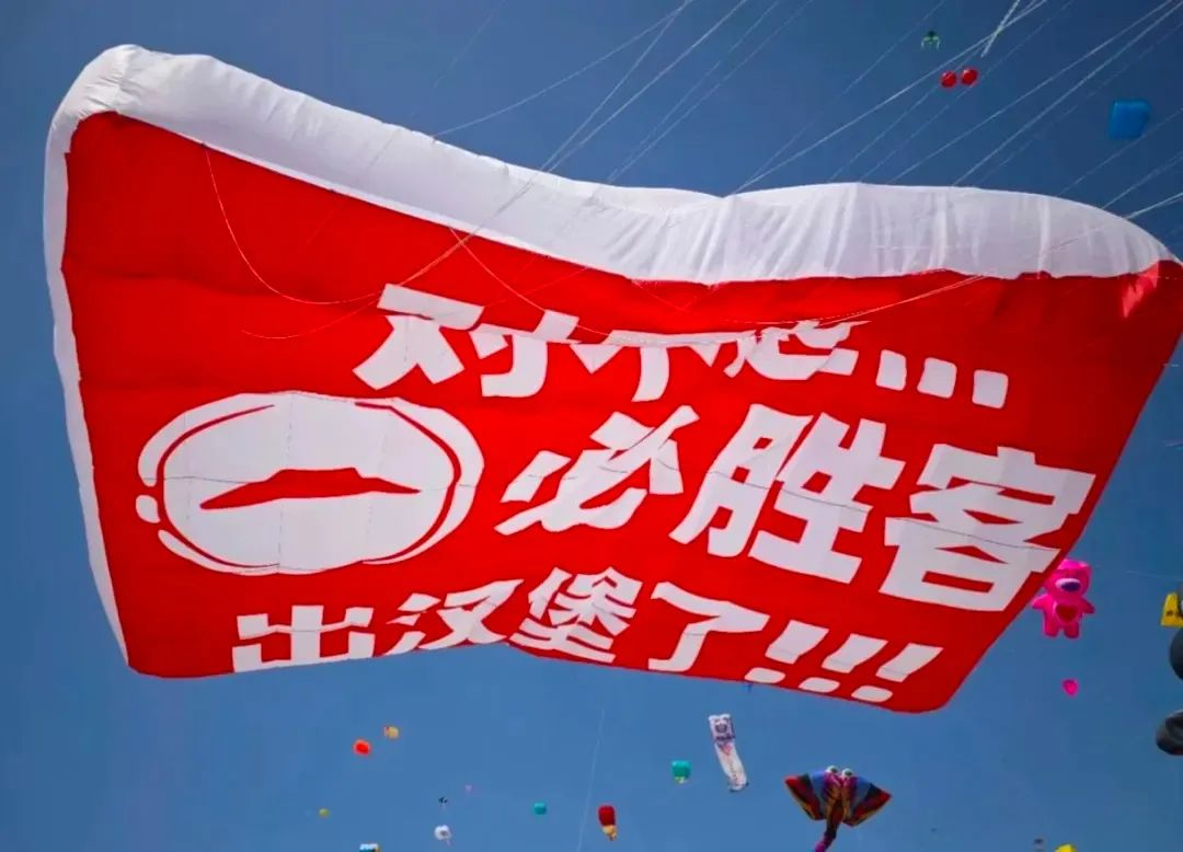 去年的風(fēng)箏節(jié),眾多品牌紛紛參與“發(fā)瘋營銷”的浪潮,將這一傳統(tǒng)活動推向了新的高峰。在風(fēng)箏節(jié)期間,淘寶連續(xù)兩年推出的巨型“放屁”風(fēng)箏成為焦點(diǎn)。這種打破常規(guī)、充滿娛樂性的廣告方式,不僅吸引了眾多目光,更讓年輕人在歡笑中釋放了壓力。而必勝客則通過簡潔的大字報形式,宣布“必勝客推出漢堡”,這種直接而簡單的營銷手段,同樣給人留下了深刻的印象。